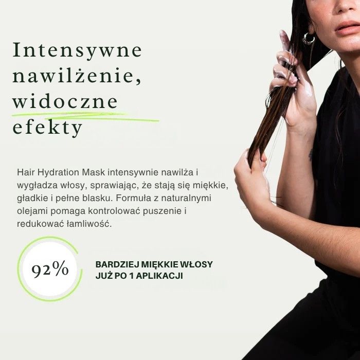 Dodatkowa wskazówka: Jeśli włosy są bardzo suche lub zniszczone, maskę można pozostawić na noc. Dla najlepszych efektów zalecamy założenie czepka, aby uniknąć zabrudzeń pościeli.