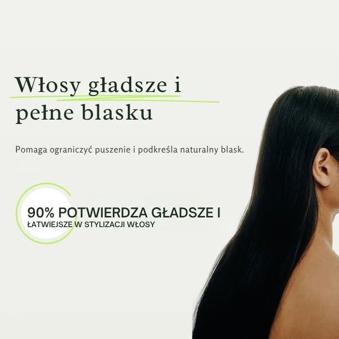 Gładsze, łatwiejsze w ułożeniu włosyOgraniczone wypadanie włosówZmniejszone puszenie