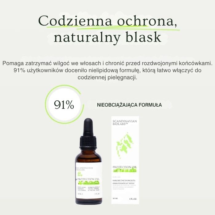 Głęboko odżywiająca formuła, która zapewnia dodatkowe nawilżenie dla osób o włosach normalnych i zniszczonych. Olejek ochronny do włosów nie zawiera silikonu i został opracowany z mieszanką naturalnych olejków, aby odżywiać suche pasma włosów i chronić je przed uszkodzeniami termicznymi.