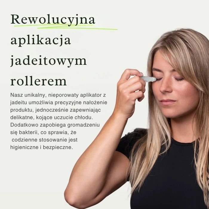Dodatkowo jadeit ma naturalnie chłodną powierzchnię, która daje przyjemne, kojące uczucie na delikatnej skórze wokół oczu. W połączeniu z ruchami rollera zapewnia efekt masażu, pomagając się zrelaksować i wspierając mikrokrążenie w tej okolicy.